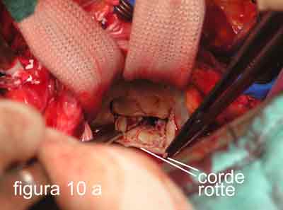 Questo vale per tutti i casi di malattia degenerativa o infettiva della valvola, mentre, in caso di insufficienza mitralica di origine ischemica o da cardiomiopatia dilatativa, applico anelli protesici (figura 11).